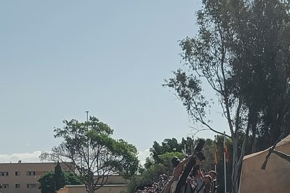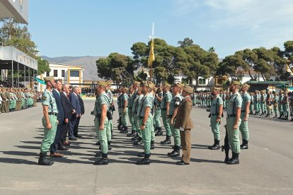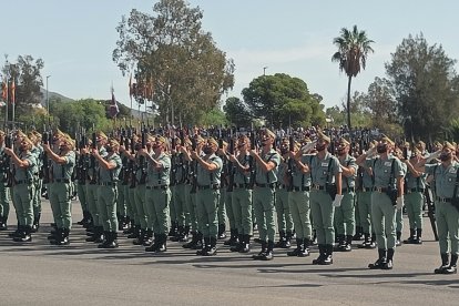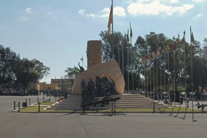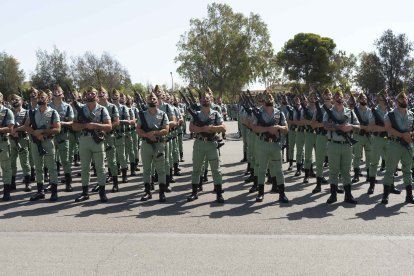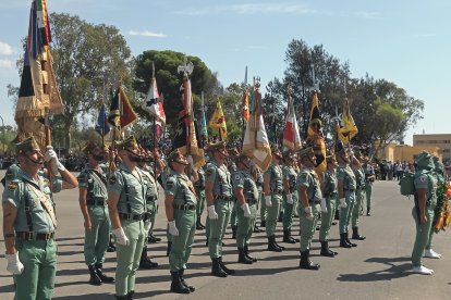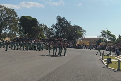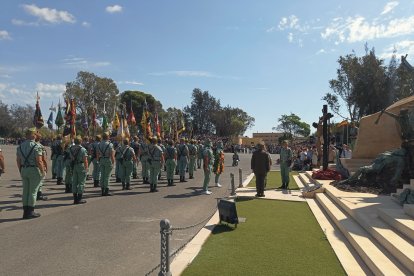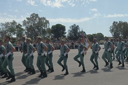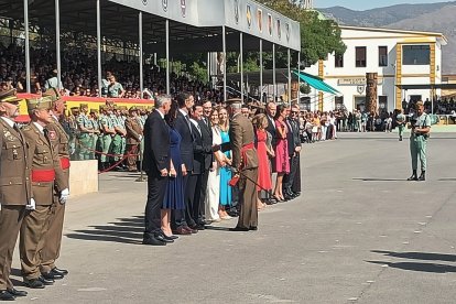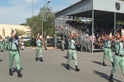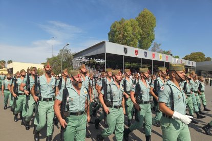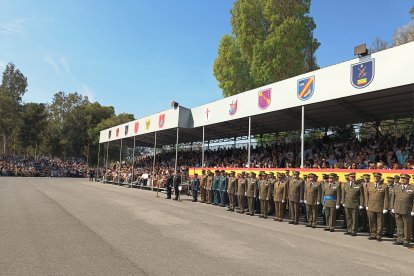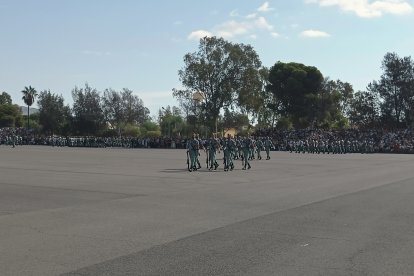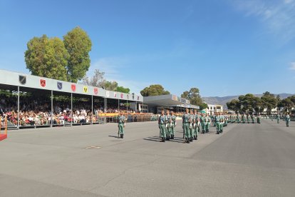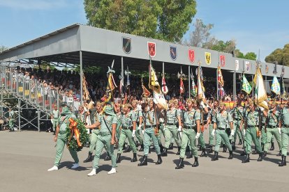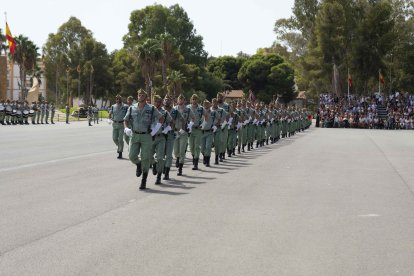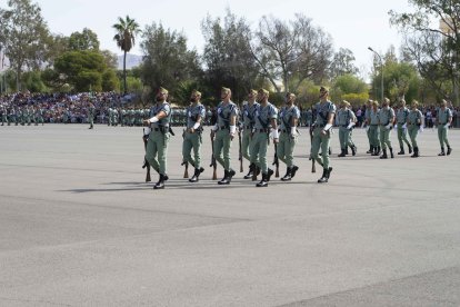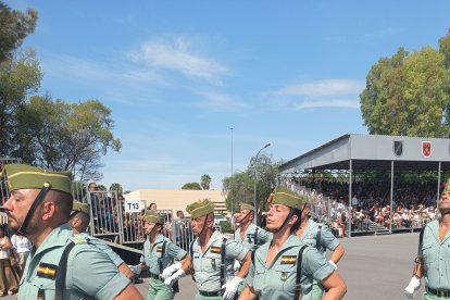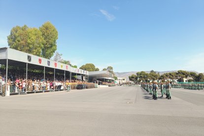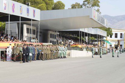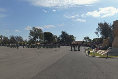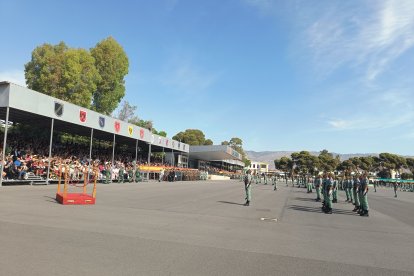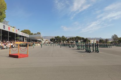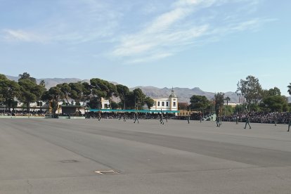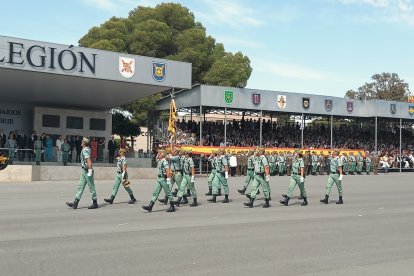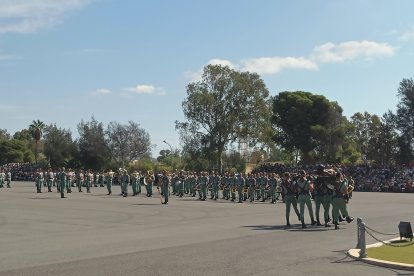 El momento más emotivo llegó con el homenaje a los caídos. Silencio, corneta, fusiles al cielo. Y después, el canto: 'El novio de la muerte', entonado primero por los legionarios y luego, casi en procesión colectiva. Aún resonaban las últimas notas cuando la formación legionaria entonaron el himno Tercios heroicos y la posterior Canción del legionario, otro instante de comunión entre la tropa y los espectadores.