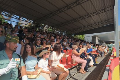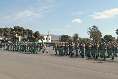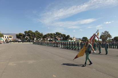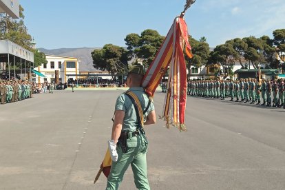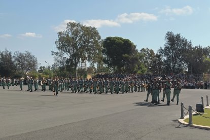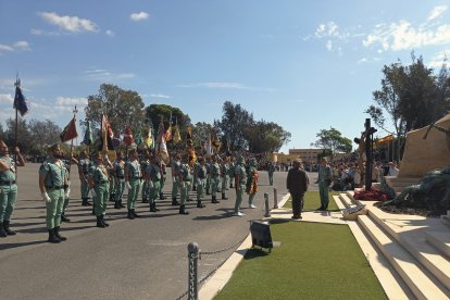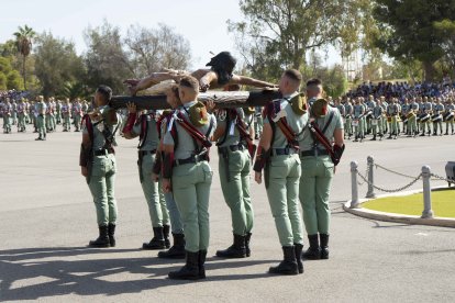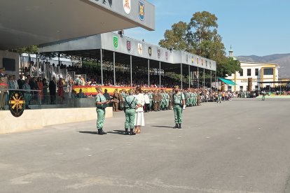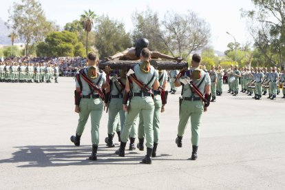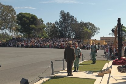 A las 10:00h las barreras de entrada de la base se alzaban para recibir a las más de cinco mil personas que han ocupado las gradas en el patio de armas de Álvarez de Sotomayor, bajo un sol implacable que parecía querer sumarse a la solemnidad de la jornada. A las doce en punto, el toque de corneta rompió el murmullo y dio inicio a la liturgia legionaria. En la plaza de armas, los gastadores condujeron al Cristo de la Buena Muerte hasta su lugar de honor; la enseña nacional entró en la explanada escoltada por el aplauso unánime del público, mientras el silencio reverencial se apoderaba de la formación.