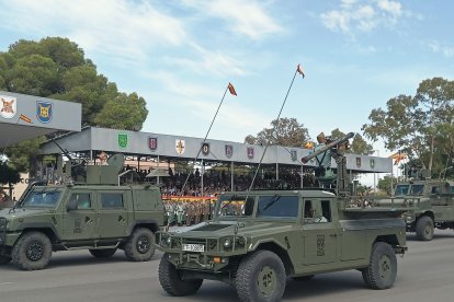Como broche final, la Brigada desfiló ante la tribuna de autoridades. Primero las unidades a pie, luego las motorizadas, en un espectáculo que arrancó vítores y saludos desde las gradas. El Teniente General Melero Claudio felicitó a la tropa por el impecable desarrollo de la parada ante la tropa y los coloridos guiones y banderines. Acto seguido, las filas se rompieron y los legionarios, junto a sus familias, se dirigieron a las casetas instaladas en la base para prolongar la celebración en un ambiente más distendido.