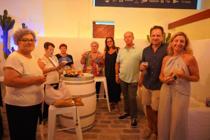 Carmen Salvador, Fina Bascuñana, Josefa García, Ana Salvador, Fina Salvador, Antonio Amate, y Luis y Maribel, del catering Los Ángeles, antes del concierto.