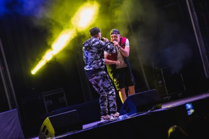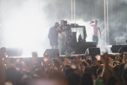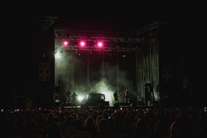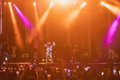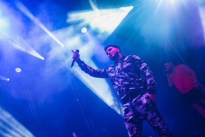 Omar Montes, uno de los artistas españoles más influyentes del panorama musical, llegó este miércoles a la capital para aportar el toque más urbano a la Feria de Almería. Acostumbrado a presentarse con deportivas, pantalones cortos, americana y cadenas, los más fieles a Omar Montes disfrutaron del trapero que dio lo mejor de sí en el escenario.