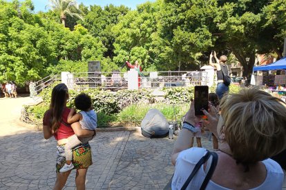 Desde primera hora, centenares de almerienses respondieron a la llamada de Artistas por Palestina. Sol, sombra de los árboles y la frescura de la brisa acompañaban la jornada, como si el parque quisiera sumarse a la causa. La cita ha arrancado a las 11:15h con un Cuentacuentos, y de ahí en adelante la música, la danza y la palabra ha llenado cada rincón. Una veintena de artistas y grupos, de estilos y generaciones distintas, se subieron al templete para decir “¡basta ya!”.