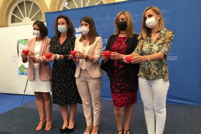 La delegada de la Junta en Almería, Maribel Sánchez, y la primera teniente de alcalde y portavoz del equipo de Gobierno municipal, María Vázquez, asisten a la inauguración de la Semana de la ONCE, 'ConONCEnos', que ha tenido lugar en el Palacio Provincial.