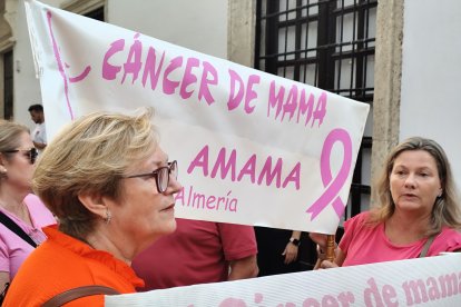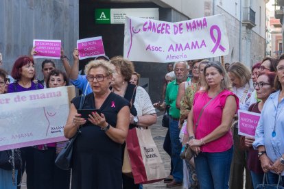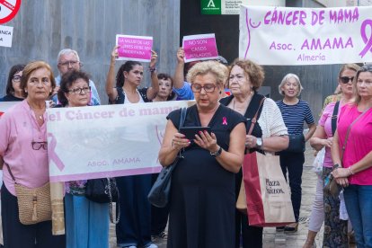"Los programas de cribado poblacional y diagnóstico precoz constituyen un pilar básico en la lucha contra el cáncer de mama. Retrasar los resultados de estas pruebas compromete la salud de las mujeres y genera una situación de incertidumbre emocional y clínica que ninguna paciente debería vivir", ha denunciado la Asociación de Mujeres de Almeria Mastectomizadas (Amama) a través de la lectura de su manifiesto, para después plantarse durante una hora en la Calle Hospital en una protesta pacífica que ha trasladado, al igual que en el resto de capitales andaluzas, el gran descontento reinante entre la población.
