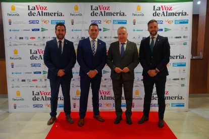 Pedro Manuel de la Cruz, director de LA VOZ, y Ricardo Céspedes, gerente de LA VOZ, saludan al alcalde de Roquetas de Mar, Gabriel Amat y al alcalde de El Ejido, Francisco Góngora.
