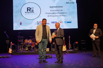 El premiado Jesús Fajardo, presidente de la Asociación de Empresarios Hosteleros de Roquetas de Mar, y Gabriel Amat Ayllón, alcalde del Ayuntamiento de Roquetas de Mar.