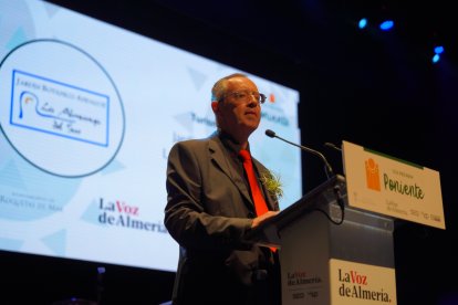 Jesús Fajardo, presidente de la Asociación de Empresarios Hosteleros de Roquetas de Mar, durante su discurso de agradecimiento.