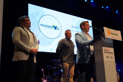 Gabriel Toledano, Julio González y Aitor toledano, socios fundadores de Toledano Hortícola, S.L., durante su discurso.