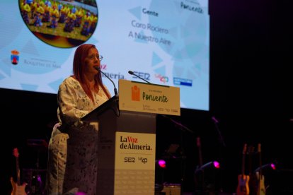 Carmen Reche Hernández, presidenta del Coro Rociero “A Nuestro Aire”, en el discurso.