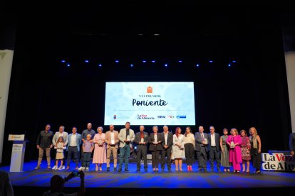 Foto de familia de todos los galardonados en los XXI Premios Poniente.