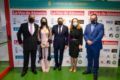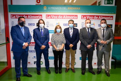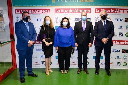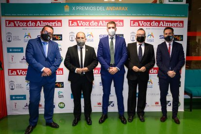 Pedro Manuel de la Cruz, director de LA VOZ; el director comercial de LA VOZ, Ricardo Céspedes, junto al alcalde de Huércal de Almería, Ismael Torres, Sonia Giménez, José Gázquez y Laura Hernández.