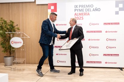 La Cámara de Comercio de Almería, junto con la Cámara de Comercio de España y el Banco Santander, en colaboración con La Voz de Almería, celebró este jueves el evento de la entrega de Premios Pyme 2025 en Almería. Este acto, en el que se reconoce el esfuerzo y la contribución de las pequeñas y medianas empresas de la provincia al desarrollo económico y la creación de empleo, marcó el cierre de la octava edición de estos galardones a nivel nacional.