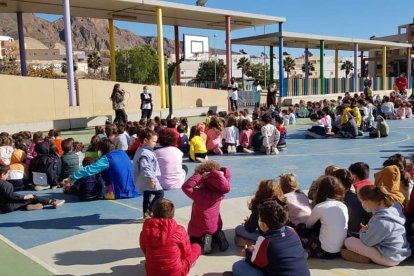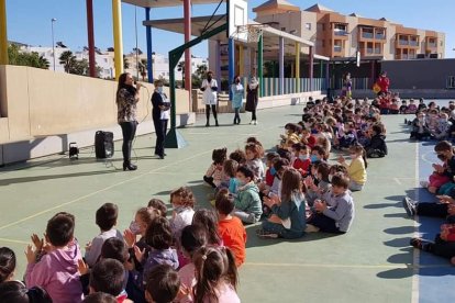 La roquetera se jubila y en su centro escolar de Aguadulce le rinden homenaje maestros y críos