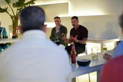 El ponente y diseñador almeriense Ramón Alba, fundador de la marca de ropa Monr Milano, charla con Ricardo Céspedes, gerente de La Voz de Almería.