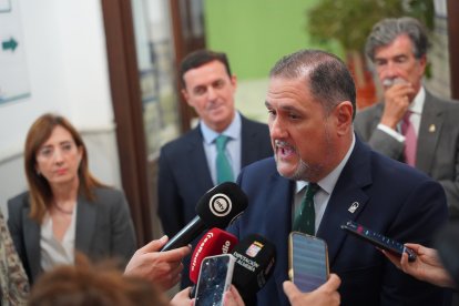 Javier A. García, presidente de la Diputación de Almería, durante su intervención ante los medios de comunicación.