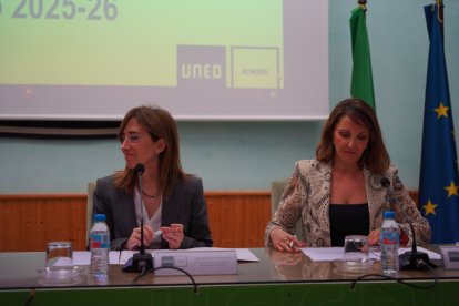 La directora de la UNED en Almería, María del Carmen Pérez, durante su intervención ante los medios.