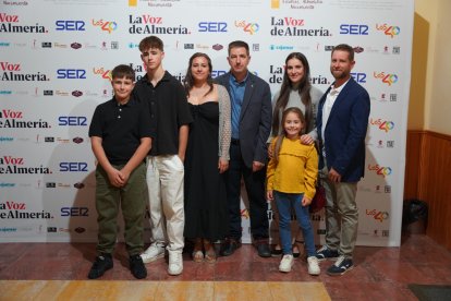 Patru Cuadrado, Patro Pérez, Francisco Cuadrado, Francisco Cuadrado hijo, premiado, José Díaz Ibáñez, alcalde de Tabernas, y Ricardo Céspedes, gerente de LA VOZ.