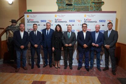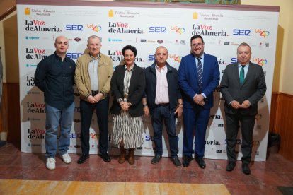 José Díaz Ibáñez, alcalde de Tabernas; Carmen María Martínez, Pedro M. de la Cruz, Noemí Cruz, alcaldesa de Castro de Filabres; José María Martín, subdelegado del Gobierno en Almería; Juan Antonio Lorenzo, diputado nacional por el PSOE y Ricardo Céspedes, gerente de LA VOZ.