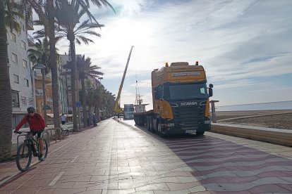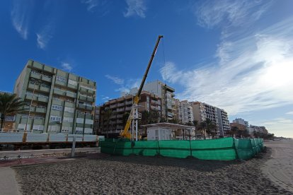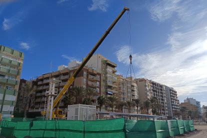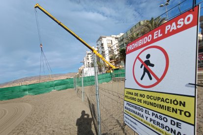 Esta mañana han comenzado a desmontar con grúa la plataforma de la Playa de San Miguel