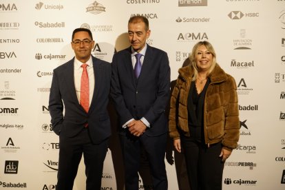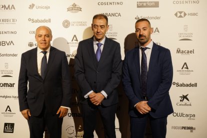 Premios Macael 2025: Ramón Granados, Jesús Posadas y José Andrés Soriano, presidente AJE Almería.