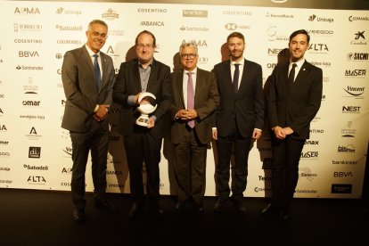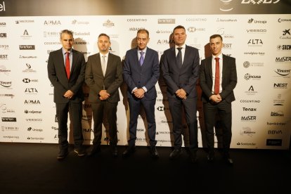 Premios Macael 2025: Juanjo Esteller, Rodrigo Mendo, Emilio Silvestre, Iñaki Heredia de Smalticeram, junto a Jesús Posadas.