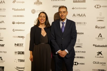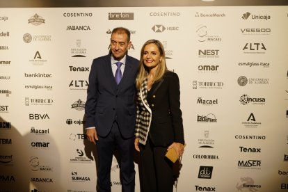 Premios Macael 2025: Jesús Posadas y Jerónimo Parra, presidente de la Cámara de Comercio de Almería junto a sus acompañantes.