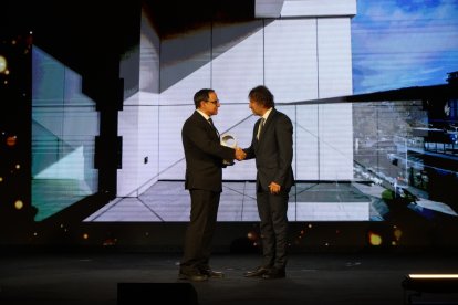 Premios Macael 2025: Javier González de Lara, presidente CEA y Jesús Posadas, presidente AEMA.