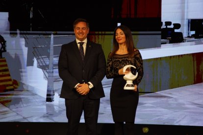 Premios Macael 2025: Jesús Posadas, presidente AEMA, y Maribel Sánchez Torregrosa, parlamentaria andaluza.