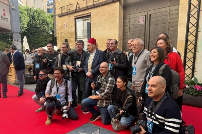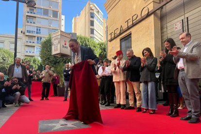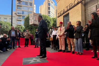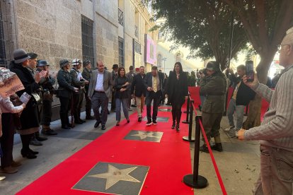 Momento del descubrimiento de la estrella dedicada a John Rhys-Davies en el Paseo de la Fama de Almería.