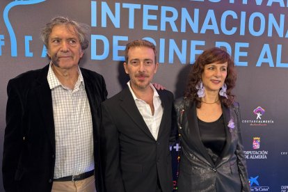 Gerardo Herrero, Víctor Clavijo y Mariela Besuievski, director, protagonista y productora de 'Carta Blanca'.