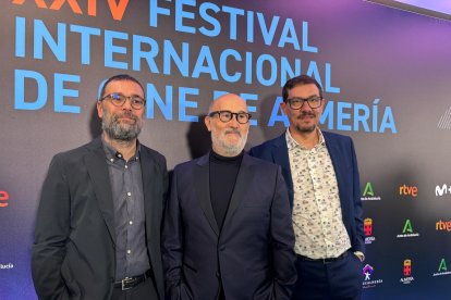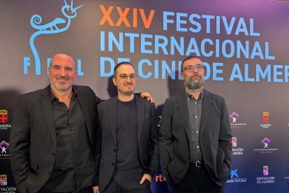Alex Floren y Fran Araujo, productores de 'Yakarta' junto a Javier Cámara, actor.