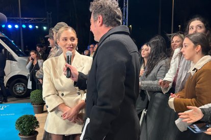 La actriz Andrea Duro, entrevistada en la entrada del Auditorio Maestro Padilla.