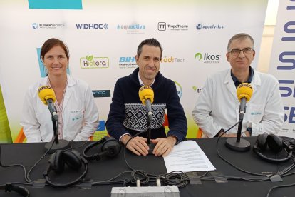 Lola Buendía, investigadora en el área de Tecnología de invernaderos y experta en huella ambiental, Fran García, delegado de Cadena SER y La Voz en el Poniente y Juan José Magán, responsable de tecnología de invernaderos.