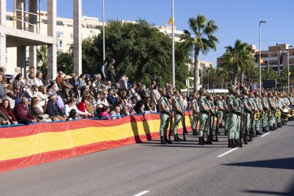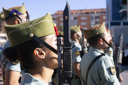 En fila india y con solemnidad, los jurandos han ido besando e inclinándose ante la rojigualda, en señal de respeto y compromiso. En esta ocasión, entre los 400 participantes se encontraban también varios usuarios de la Asociación de Personas con Lesión Medular y otras Discapacidades Físicas de Almería (Aspaym). Momentos antes, en la rotonda de la Avenida de Alicún, ha tenido lugar el izado de bandera ante los concejales y el alcalde de Roquetas, así como otras autoridades civiles y militares; una acción que ha inaugurado una mañana en la que la emoción y la lealtad han sido las protagonistas.