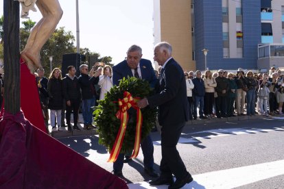 Tras la jura, la Legión ha homenajeado frente al Cristo de la Buena Muerte a los compañeros caídos en el ejercicio de sus funciones. Al son de El Novio de la Muerte, Antonio Rabaneda Machado, Hermano Mayor de la Cofradía del Santísimo Cristo de la Buena Muerte del Parador, y el alcalde Gabriel Amat han depositado una corona de flores ante la figura, a la que han pedido, a su vez, que ayude a los jurandos a cumplir lo prometido. El solemne acto se ha cerrado con un desfile de retirada de las tropas. Consulte aquí las mejores imágenes.