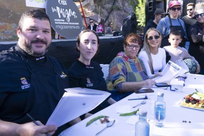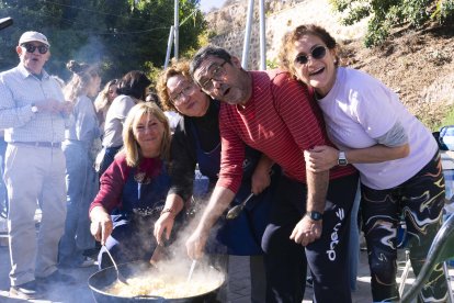 María, Mari Carmen, Sebas y Manuel, un matrimonio y sus cuñados, preparados para probar las migas municipales.