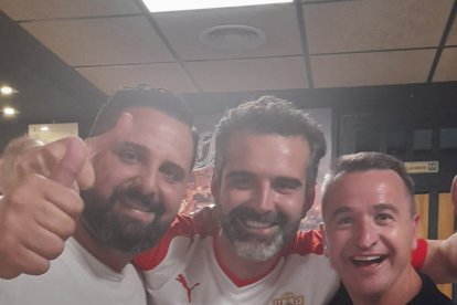 Rodrigo Sánchez Haro y José Luis Sánchez Teruel, del PSOE, en familia para apoyar al Almería en Leganés.