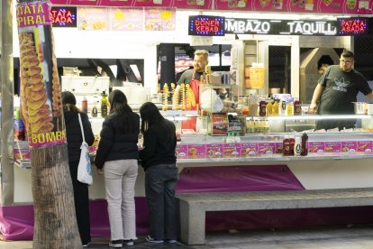 Grupo de amigas esperando su comida en los puestos de La Rambla