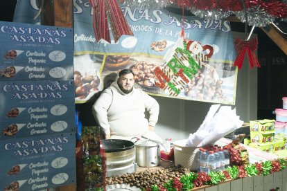 Jose, ofreciondo castañas en el puesto 'Los cachondos de la feria'