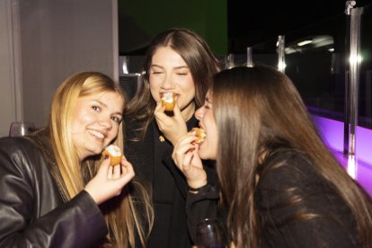 Judith Candela, Lucía Camacho y María Ibañez disfrutan de las croquetas del menú