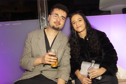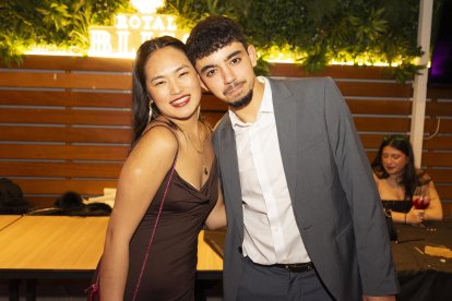 Beatriz Gil y su amigo Carlos, disfrutando de la cena con sus compañeros de carrera