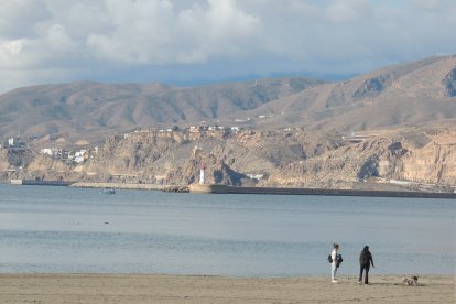 Almería se echa a la calle para celebrar la llegada de la Navidad. La lluvia de la Nochebuena quedó atrás y en esta jornada festiva cientos de ciudadanos han decidido pasear junto al mar, e incluso por la aún mojada arena de la playa, ya que esta provincia de contrastes invitaba a mirar al Mediterráneo y a la nevada Sierra de Los Filabres.