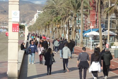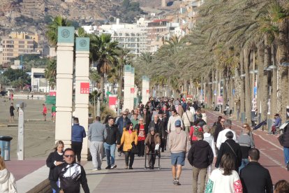 Magnífico ambiente en el Paseo Marítimo de Almería en el Día de Navidad, con sol y buena temperatura.