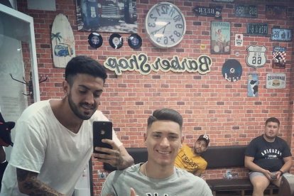 Galerías El barbero del Almería Facebook Twitter Whatsapp Whatsapp Copiar enlace Publicado por La Voz Creado: 24.07.2022 | 11:01 Actualizado: 24.07.2022 | 11:01 La Voz Leandro Delage con José Carlos Lazo.