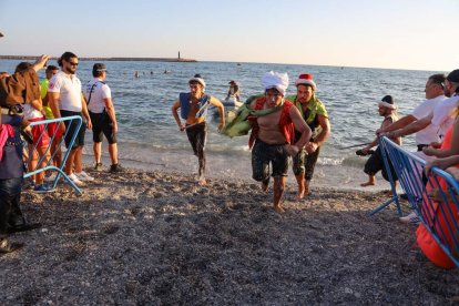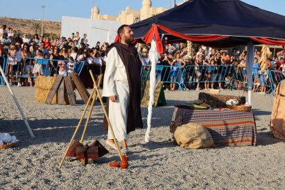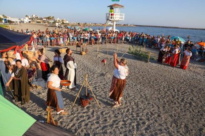 Cientos de personas acuden a la recreación del desembarco fechado en 1552 en la costa ejidense