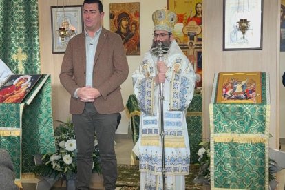 Alcalde de Níjar, José Francisco Garrido, y obispo ortodoxco, Timotei Laran.