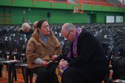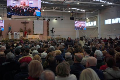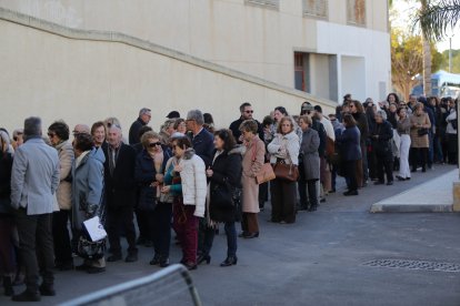 Largas colas para acceder a la beatificación del Cura Valera en el Espacio de Usos Múltiples de Huércal-Overa.