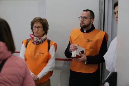 Chalecos naranjas para identificar a los voluntarios en la beatificación del Cura Valera.