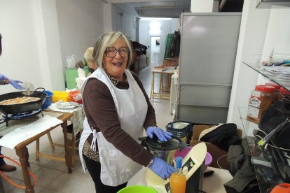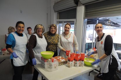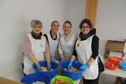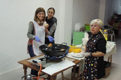 Encarna, María José y Loli preparando más 'papaviejos'.