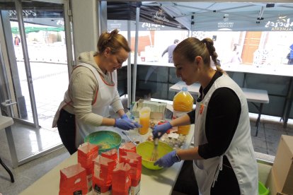 Amparo, madre e hija, con los productos de 'El Gadorense'.